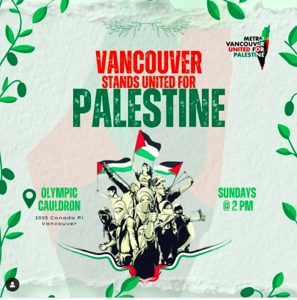 It’s been a hard week, just like last week, and the week before, and the week before that. The occupation doesn’t stop, and neither can we as we continue to stand in solidarity with the Palestinian people. Local actions are still happening all around us in Vancouver - a number of which are listed in this newsletter.