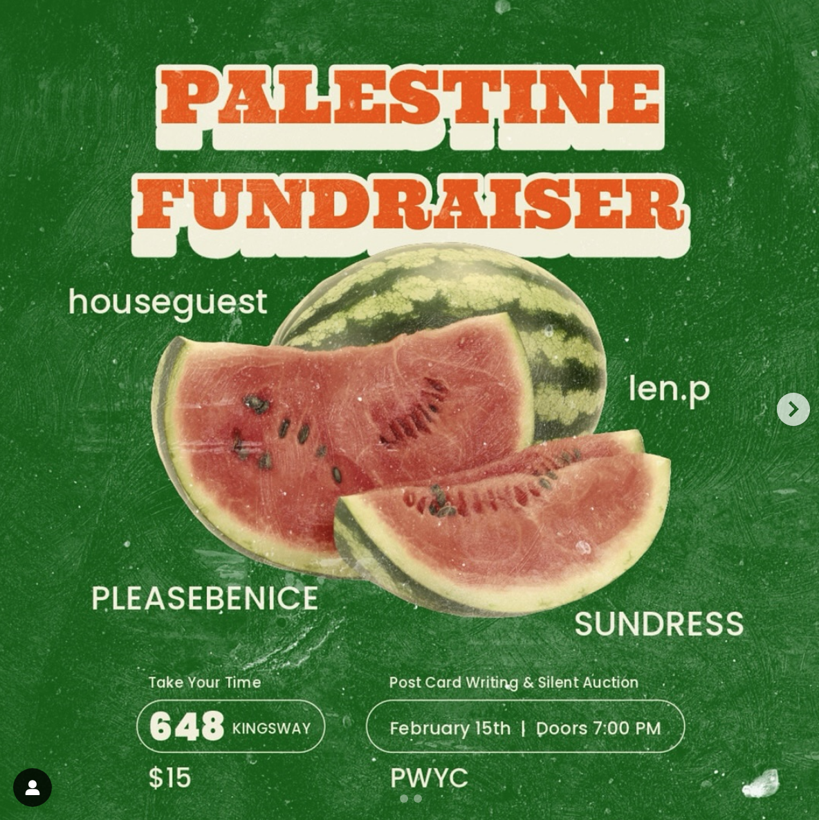 📍 Location: 648 KingswayPalestine Fundraiser - come enjoy live bands @wearehouseguest @sundress.wav @pleasebeniceyo + then hit the dj crossover for the end of the night! we’ll have post card writing and a silent auction happening throughout the evening ┊͙ ˘͈ᵕ˘͈ pls wear a mask!