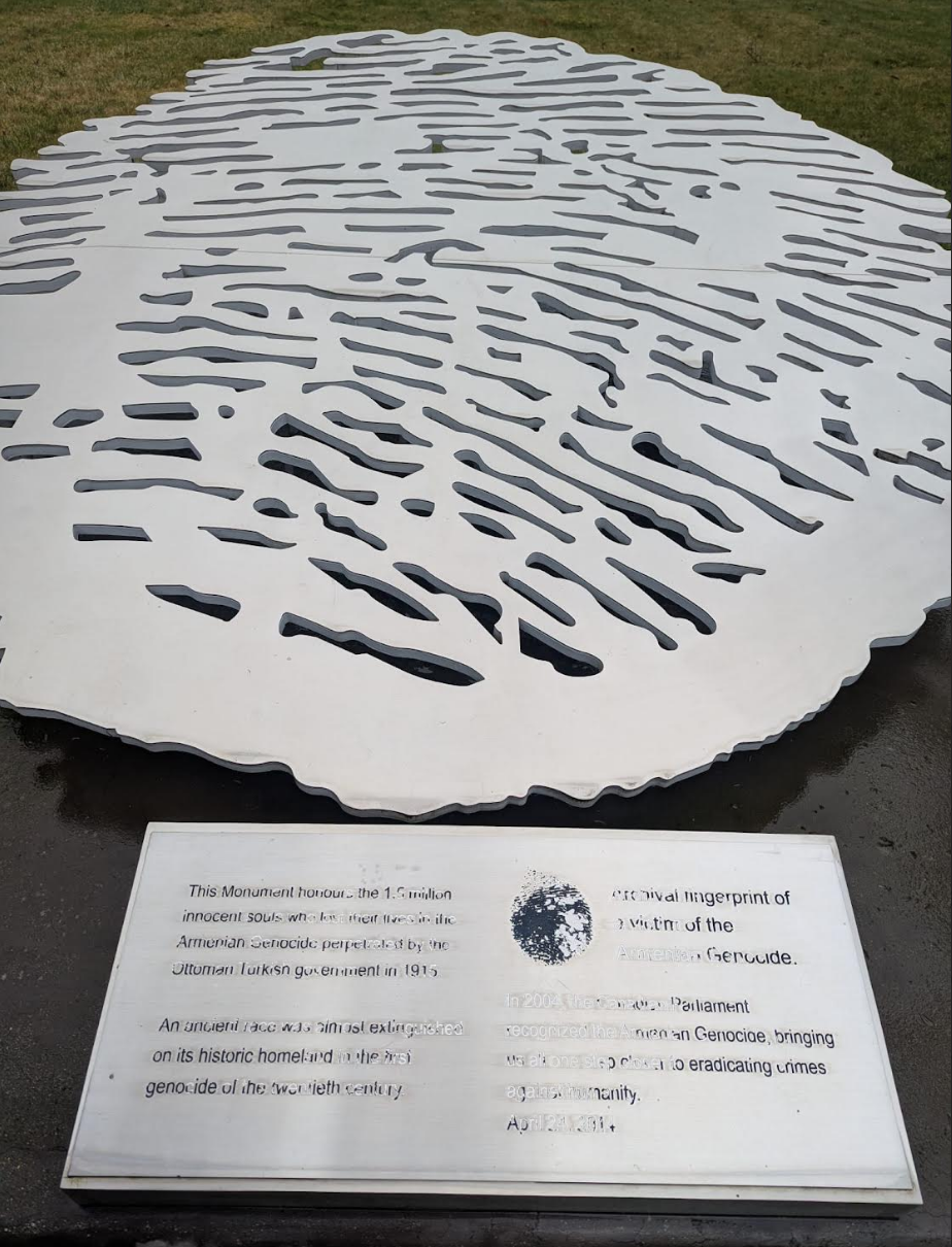 The mixture of feelings we felt were hard to describe. Deep sorrow for the staggering number of victims of the Armenian Genocide. A bitter taste of irony in the faded lettering proclaiming that recognition of that genocide supposedly brought us ‘one step closer to eradicating crimes against humanity’. Incredulity that the Canadian Parliament took 89 years just to recognise that horrific genocide (though that abeyant approach is not surprising when you consider that this country itself is built on the genocide of Indigenous peoples, a fact that was first whispered by Trudeau only in 2021).