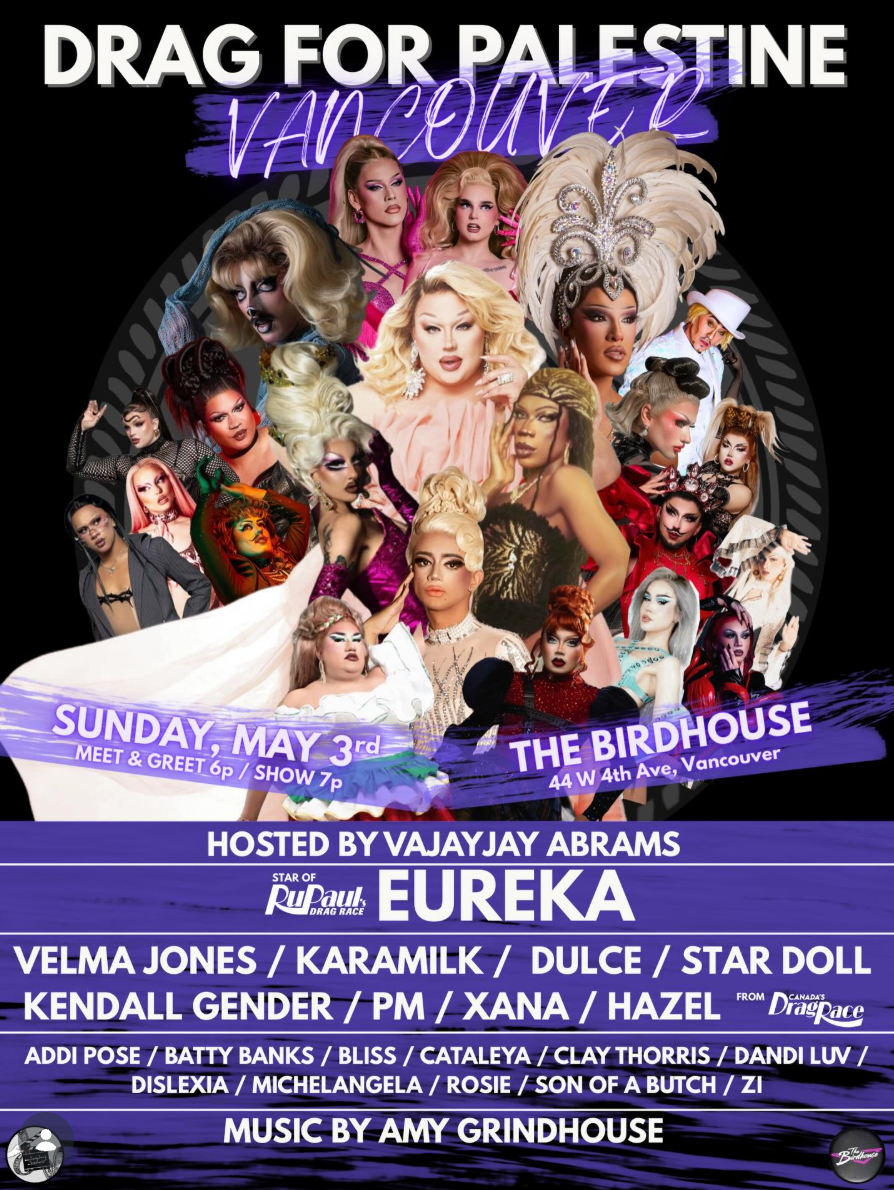 Featuring performances by Vancouver’s own Addi Pose, Amy Grindhouse, Batty Banks, Bliss, Cataleya, Dislexia, Michelangela, and Son of a Butch; Toronto’s Dandi Luv, Rosie, and Zi; Montreal’s Clay Thorris; Canada’s Drag Race stars Velma Jones, Karamilk, Dulce, Star Doll, Kendall Gender, PM, Xana, and Hazel; and all the way from RuPaul’s Drag Race and HBO’s We’re Here, Eureka will be here!