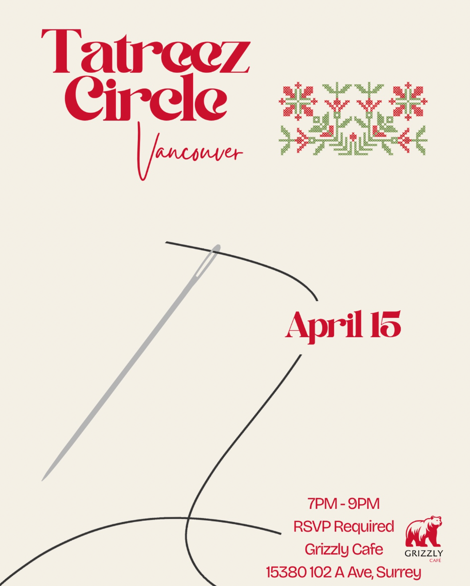 Join us for our Tatreez Circle! Come stitch, chat, and honour Palestinian tradition together. All levels welcome. Tatreez Circle is held on a bi-weekly basis, every other Wednesday.