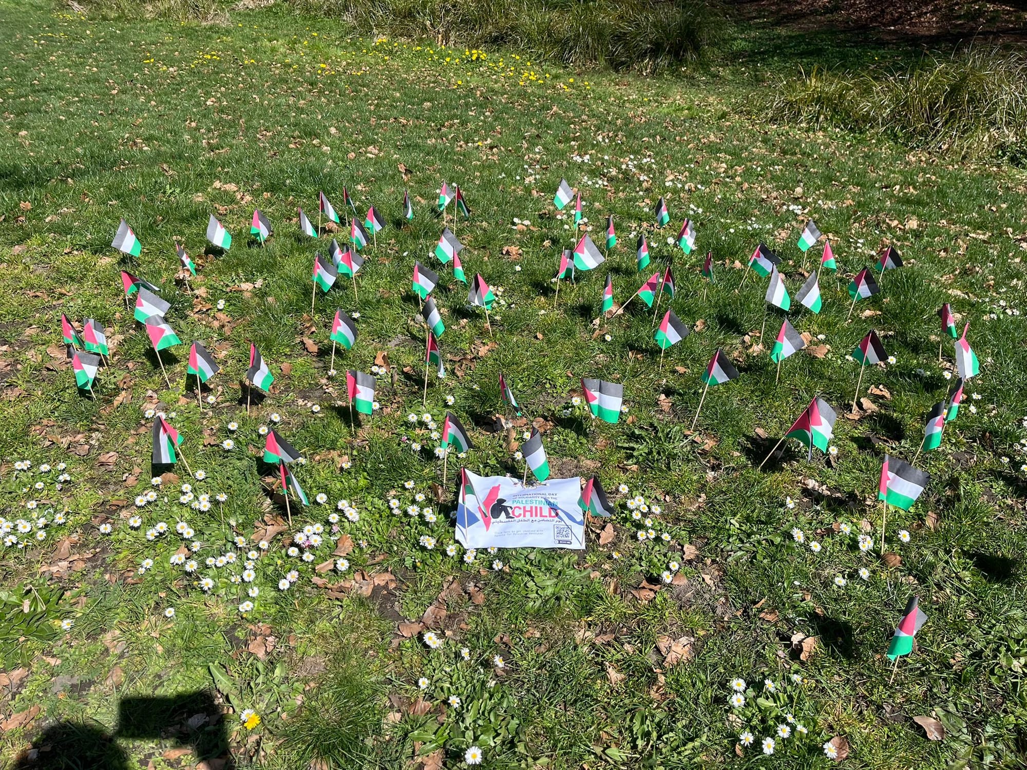 Whenever we see another comrade wearing a keffiyeh or we see street artwork, a flag sticker - anything that reminds us of our collective humanity - we feel lifted. We spotted this installation from @ParentsforPalestineYVR in Riley Park, honouring Palestinian Children's Day. They shared this powerful message on Instagram: