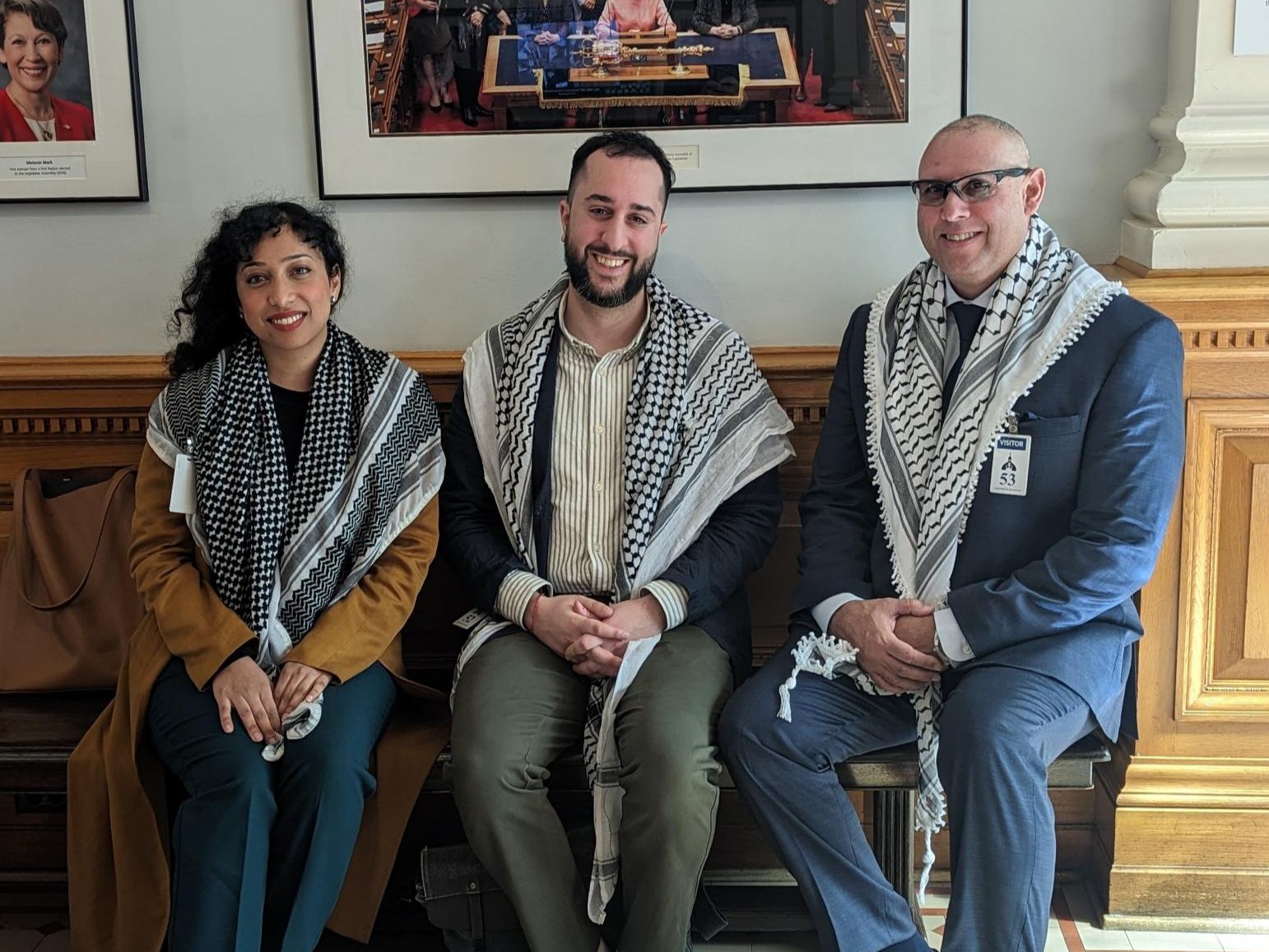 On April 29th, the National Council of Canadian Muslims (NCCM) organized an advocacy day at the Provincial Legislature. Three of our own VanGran4Pal members attended the event representing our community! During the day they met with a number of government officials including the leader of the Green Party, the Minister of Education, the Speaker of the Legislative Assembly, and David Eby. The primary ask by the NCCM was for BC to include Islamophobia and Anti-Palestinian racism in the education system from K-12. VanGran4Pal members spoke about their experiences facing Anti-Palestinian racism, the discrimination facing supporters of Palestine, and longstanding Islamophobia. They reminded MLA’s that anti-discrimination education must be inclusive and robust to build a better future for marginalized communities.